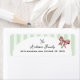 Esta etiqueta de endereço de volta de Natal apresenta um arco de fita vermelho e verde alegre com uma borda verde e suave listrada.
