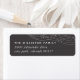 Uma etiqueta de endereço de retorno simples e moderna, com seu nome e endereço em letras brancas em um fundo de tons ricos, destacada com linhas fluindo no topo. Projetado para coordenar com a nossa coleção de férias do Winter Tidings.