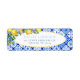 Etiqueta de endereço de devolução de azulejo azul italiano floral de limões aquarela.