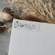 Esta etiqueta verde de retorno de caligrafia é perfeita para um casamento rústico. A design apresenta galhos e folhas de eucalipto verde botânico desenhados à mão.