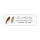 Etiqueta de endereço de retorno cômoda com um cardeal macho e fêmea em fundo branco. Basta adicionar seu nome e endereço. O estilo e o tamanho da fonte podem ser alterados clicando em "personalizar mais".