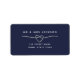 Etiqueta simples, mínima e moderna de marinho azul de volta do endereço de casamento com coração de corda prateada.