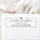 Etiquetas de Endereço de Devolução de Casamento Elegantes, Modernas, Pretas e Brancas, com Letra à Mão. Apresentando um lindo modelo de nome de noiva e noivo com letra manuscrita e fonte com cauda em preto, pequeno coração no topo, moldura fina em torno de um fundo branco. Fácil de personalizar com seus nomes e informações de endereço de devolução.
