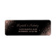 Esta etiqueta elegante de endereço de devolução de casamento apresenta um design de brilho falso em rosa dourado disposto diagonalmente em dois cantos. O texto personalizável combina escrita à mão em rosa pálido e fontes copperplate em um fundo preto.