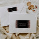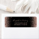 As bordas desta etiqueta de endereço de devolução de casamento moderna e elegante apresentam um design de brilho falso em rosa dourado. O texto personalizável combina escrita à mão em rosa pálido e fontes copperplate em um fundo preto.