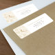 Esta etiqueta do endereço de retorno complementa lindamente uma suíte de papelaria de casamento com tema vitoriano com sua elegante design. O lado esquerdo da etiqueta mostra um pássaro ouro no meio de um pano de fundo de intrincados padrões florais, colocados contra uma canvas branca cremosa. O lado direito apresenta os nomes e endereços dos casais em uma superfície de tipo sofisticada que se harmoniza com a estética da safra. Os cantos arredondados do rótulo acrescentam um toque moderno ao visual clássico, fazer-o um toque perfeito para a correspondência de casamento.