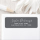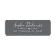 Um adesivo de retorno de endereço simples e elegante em uma cinza profunda. O estilo da fonte, o tamanho da fonte e a cor podem ser alterados clicando em "personalizar mais".