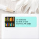 Etiqueta de endereço de devolução de design de prateleiras de livros com cor e texto personalizáveis.