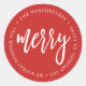 Esta etiqueta de endereço de retorno de feriado contém a palavra "feliz" em um script branco moderno no centro da etiqueta com seu nome e endereço ao seu redor.