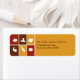 Esta etiqueta de endereço de retorno usa os ícones da Ação de Graças para transmitir desejos calorosos. As cores dourada, vermelha e marrom cercam ícones de um peru, chifre de abundância, e ouvido de milho, entre outros, para enquadrar seu nome e endereço. Disponível em cores alternativas com produtos correspondentes.