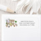 Etiquetas de endereço de retorno com uma cena de jardinagem, incluindo uma linha de roda, pás e plantas com revestimento de madeira. Anunciamentos comoventes disponíveis em nosso compro.