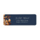 Esta elegante etiqueta de endereço de retorno de casamento outono apresenta cor d'água queimada manualmente, laranja queimada e folhas de terracota, creme e dahlias bege, e belos rosas de cor ferrugem em fundo de Marinho. Localizar itens correspondentes na Coleção Romance de outono do Marinho.