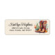 Essas maravilhosas etiquetas de endereço de retorno com seu nome em uma fonte de script estilo ocidental e seu endereço em uma fonte serif fácil de ler emparelhada com uma fabulosa imagem aquosa de botas de cowgirl com cactos e flores seria perfeito para todas as suas necessidades de correio!