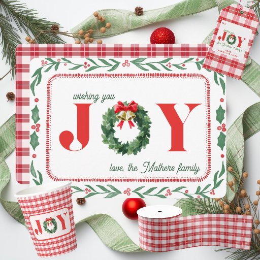 Celebre a temporada com este encantador cartão de Natal apresentando uma exuberante grinalda de buxo adornada com folhas festivas de visco em uma moldura caprichosa. A palavra "ALEGRIA" toma o centro do palco, capturando o espírito sincero das festas de fim de ano. Com um xadrez vermelho clássico de nossa coleção Cozy Christmas Plaid no verso, este cartão combina elegância tradicional com charme rústico. Perfeito para enviar votos calorosos a familiares e amigos, este cartão combina elementos botânicos naturais com estilo atemporal de Natal. A grinalda de buxo simboliza a vida eterna e a renovação, enquanto a moldura divertida de visco adiciona um toque de capricho vintage. Se você está compartilhando saudações de temporada ou expressando sentimentos sinceros, este cartão traz um sentimento aconchegante e acolhedor para a sua correspondência de Natal. Impresso em papel cartão de qualidade, este cartão é ideal para quem ama a beleza nostálgica da decoração