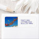 Papai Noel e seu trenó puxados por renas contra um céu noturno estrelado é uma imagem excelente para uma etiqueta de endereço de volta de Natal! Fácil de personalizar o texto.