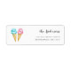 Etiqueta de endereço de retorno doce com sorvete rosa e azul em cones de waffle. Personalize este produto adicionando seu nome e endereço. Use este rótulo ao enviar seu convite de tema de sorvete para a parte de revelação de gênero.