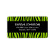 Um verde limão de tendência e uma etiqueta de endereço de retorno de impressão em zebra preta.