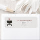 Um adesivo de etiqueta de endereço de retorno rápido com uma ilustração de um churrasco e informações personalizáveis. Perfeito para enviar convites para uma festa de CHURRASCO, quintal ou festa de bairro ou qualquer recepção de verão que você organiza com amigos ou familiares!
