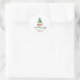 Um círculo festivo colorido retorna etiquetas de endereço com uma ilustração de cena de Natal a aquarela, com uma árvore de Natal cercada por presentes envoltos. Seu nome e endereço estão em verde e vermelho.
