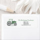 Um adesivo de etiqueta de endereço de retorno com uma ilustração de um trator de fazenda verde e cinza no estilo de desenho animado! Pode ser utilizada para uma família rural ou para um agricultor!