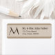 Rótulo de Endereço de Retorno Monograma Simples e elegante com fundo de cor personalizável. Você pode facilmente alterar o tamanho da marca central transparente e alterar o texto (fonte, cor, tamanho e posição). Aqui harmonia marrom.