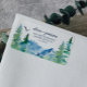 Essas etiquetas de endereço de devolução da Montanha Rochosa são perfeitas para um casamento ao ar livre. O design apresenta uma paisagem selvagem pintada em azul e verde com árvores de pinheiro em aquarela, pássaros e montanhas. Essas etiquetas podem ser usadas para um casamento, chá de noiva, evento especial ou sempre que você precisar de uma etiqueta de endereço pessoal.