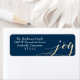 Esta etiqueta de endereço de retorno de feriado contém um belo script de folha de papel em ouro sobre um fundo azul marinho em negrito. Esta coleção inclui cartões com fotos, etiquetas de endereços, carimbos, adesivos e muito mais.