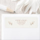 Simples e elegante etiquetas de endereços de casamento em fontes ricas escuras de ocre com detalhes foliares, contra um fundo de marfim chico.
