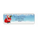 O rótulo do tema Natal Festivo mostra um Papai Noel Jolly com seu saco vermelho e presentes. O céu azul e a neve cobriam o fundo. Personalizar área de texto.
