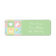 Quatro quadrados em pastéis macios de cor rosa, verde, azul e amarelo são emoldurados por um design branco como marcas de pontos e decorados com ícones fofinhos, com tema para bebês, de uma garrafa, fralda, chocalho e bib. Personalize o painel de sobreposição à direita com o seu endereço para fazer uma etiqueta bonita para anexar aos seus convites para chuveiros de bebês. Eles também fazem etiquetas de presentes de excelente! Basta substituir os detalhes do endereço por "Para:" e "De:" para fazer uma maneira perfeita de marcar qualquer presente para um novo bebê. Certifique-se de verificar a coleção de cheio Baby's Quilt para mais ofertas e produtos de excelente para um chá de fraldas ou para o pequeno da sua vida.