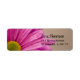 Emparelhe a Etiqueta de Endereço de Retorno de Gerber Daisy Flower bonito com os convites de Casamento, Cartões de Saudação ou Cartazes de Pós-Estágio para criar um conjunto de artigos de papelaria coordenado. Estes adesivos personalizados e fofinhos de endereço de retorno de floricultura apresentam uma fotografia floral pintada digitalmente de margarida cor-de-rosa em um fundo bronzeado.