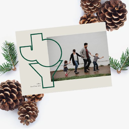 Este cartão de feriado apresenta uma Joy tipográfica em um layout exclusivo.