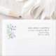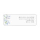 Uma etiqueta de endereço de retorno de casamento com flores azuis claras.