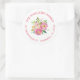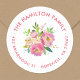 Os adesivos personalizados de endereço de retorno de círculo personalizados com seu nome de família e endereço em torno de um buquê floral cor-de-água rosa brilhante e verde. Use as ferramentas de design para alterar a cor e as fontes do plano de fundo para personalizar ainda mais seu próprio design único.