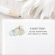 Uma etiqueta elegante de endereço de retorno de convite de chá de fraldas projetada com abóboras de aquarela azul e branca. Clique no botão "Personalizar mais" para editar. Correspondência de itens em nossa loja design de festa Cava