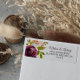 Esta simples etiqueta do endereço de retorno floral é perfeita para um casamento simples. A design ilustrada graciosa e radiante apresenta flores elegantes, cor de pêssego, vermelha escura, rosa, branca, aquarela, burgundy e pristine, bem agrupadas num buquê espantoso num leito de verde devastador.