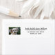 Etiqueta de endereço de retorno personalizada e elegante para uma pessoa (pode ser personalizada para uma família também), com um stand-in (com uma máscara com cantos arredondados) para uma foto do seu gato de estimação (ou de um de vocês e de seus amigos de pelúcia; ou você pode carregar uma foto de um cachorro em vez disso), e com um roteiro elegante de caligrafia/escrita manual com flores para seu primeiro e sobrenome ou o nome mais todos os bonés escrevendo o seu endereço.