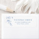 Etiqueta de endereço de retorno minimalista com folhas botânicas ilustradas à mão rústicas e fontes clássicas modernas em azul e branco, simples, elegante e profissional. Veja todas as peças correspondentes na coleção.
