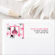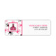 Um rótulo de endereço de retorno para os professores que apresentam o logotipo da Escola Rosa, à esquerda, sobre um fundo de impressões digitais pretas e cor-de-rosa, com guarnição cor-de-rosa. Personalize com seu nome e endereço à direita.