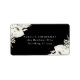 Etiqueta de Endereço Floral Elegante Bohemian. Flores tropicais de cor branca e folhagem verde delicada sobre fundo preto.
