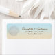 Belo endereço de retorno de concha design, com um gradiente de azul de praia e areia.