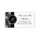 Cor damasco Preta e Branca com as Etiquetas de Endereço de Retorno Inicial do Monograma para o Envelope RSVP de Casamento. Se você precisa abordar seus envelopes de RSVP, por que não usar essas lindas etiquetas? Personalize com os detalhes do seu monograma inicial, nome e endereço. Escolha a cor do plano de fundo e a cor do monograma também. Elke Clarke©