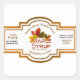 Borda vintage antiquada de gradiente colorido de xarope de maple. Três folhas coloridas de ácer são o foco desse rótulo de xarope de ácer, até o título "xarope de ácer" é colorido e vermelho profundo. Personalize com seu nome comercial, endereço, informações de contato e xarope de maple, qualidade e volume. As conversões comuns de fl oz a ml são incluídas no campo de formulário adjacente.