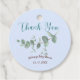 Torne o chá de fraldas extra especial com esta etiqueta de favor personalizada. Belo azul macio com designs botânicos personalizados com nomes, ideal para a etiqueta de favor Chá de fraldas elegante