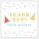 Um aniversário de criança festivo favorece o adesivo com aspersão arco-íris e chapéus de festas feitos à mão e nome e idade personalizáveis.