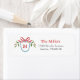 Etiqueta de endereço de retorno de feriado elegante com crista de aquarela pintada manualmente com citrinos e arco vermelho com monograma no centro. Cartão de saudações e autocolantes também disponíveis.