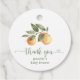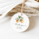 Etiqueta de lembrancinha de chá de bebê cutie. Etiqueta de lembrancinha de chá de bebê com laranjas circulares.