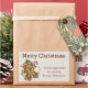 Etiquetou os presentes de Natal com este adesivo de Natal na moda. Gráficos de fundo com aspecto de linho e gráficos bonitos de gengibre e outras curvas de Natal, decoram o lado esquerdo da etiqueta. Personalize o texto vermelho para ler o que você quer. Excelente para qualquer coisa que você possa fazer, de pães, sabonetes, doces, a itens de malha.