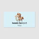 Um nome de etiqueta com uma ilustração adorável. Um pequeno pônei marrom comendo margaridas felizes.