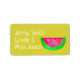Etiquetas de livros para frutas, de cor cinzenta, bonitas e coloridas, ou etiquetas adesivas para os jovens estudantes. Este design apresenta um desenho de fruta de melancia giro contra um fundo personalizável. O texto é totalmente personalizável para incluir o nome próprio e os detalhes da classe.